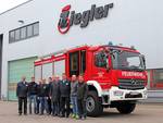 ![]() | Bei der Firma Ziegler in Giengen konnte die Feuerwehr Fränkisch-Crumbach am Donnerstag ihr neues LF 10 aus der Landesbeschaffungsaktion abholen. |